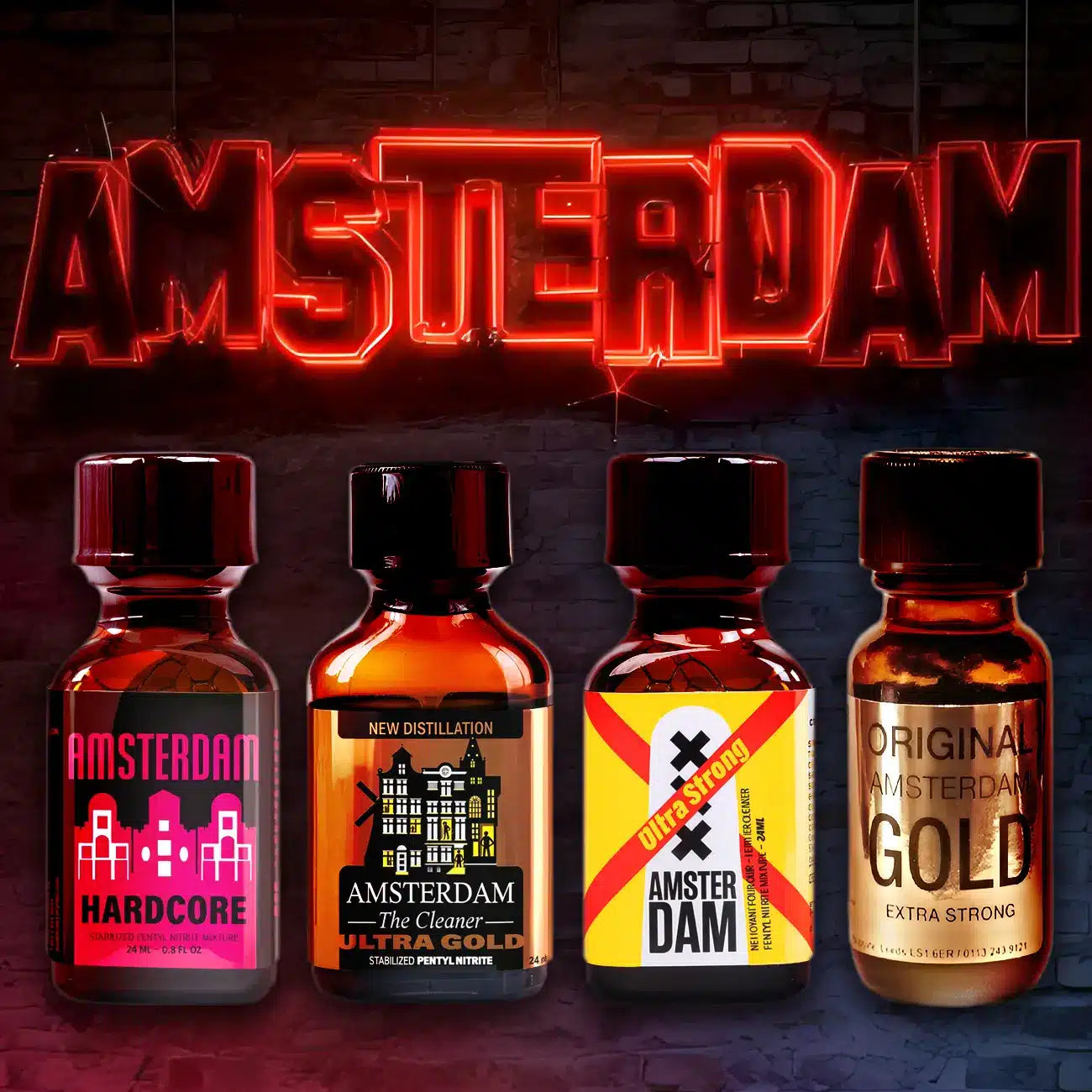 Introducing The Amsterdam Pentyl Pack – a powerful collection of four poppers designed to deliver unforgettable sensations. This exclusive pack features three potent pentyl formulas—Amsterdam Hardcore, Ultra Gold, and XXX Ultra Strong—alongside the iconic Original Amsterdam Gold Extra Strong, renowned for its classic formula. Together, these poppers offer deep relaxation, heightened pleasure, and intense euphoria, perfect for parties or intimate moments. Experience the essence of Amsterdam with this premium selection, blending tradition and potency for an exhilarating rush. Get your Amsterdam Pentyl Pack now and feel the freedom of the ‘Dam!